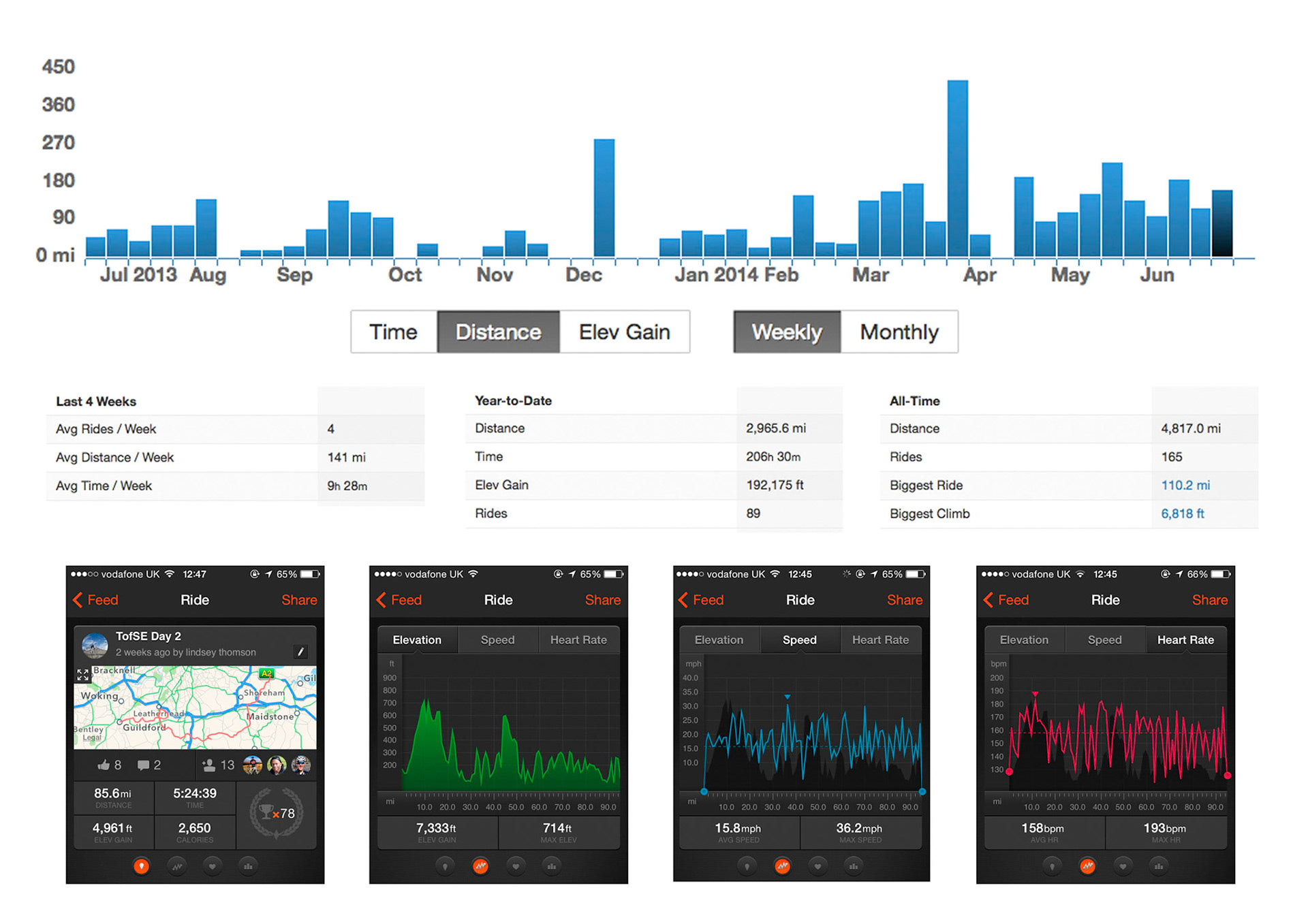 A self confessed cycling addict, Lindsey tracks every ride with a Garmin bike computer and the Strava app. This allows her to monitor data in real time and retrospectively view it in more detail. Strava has gained a dedicated following within the cycling community with 2.6bn Km of riding logged.