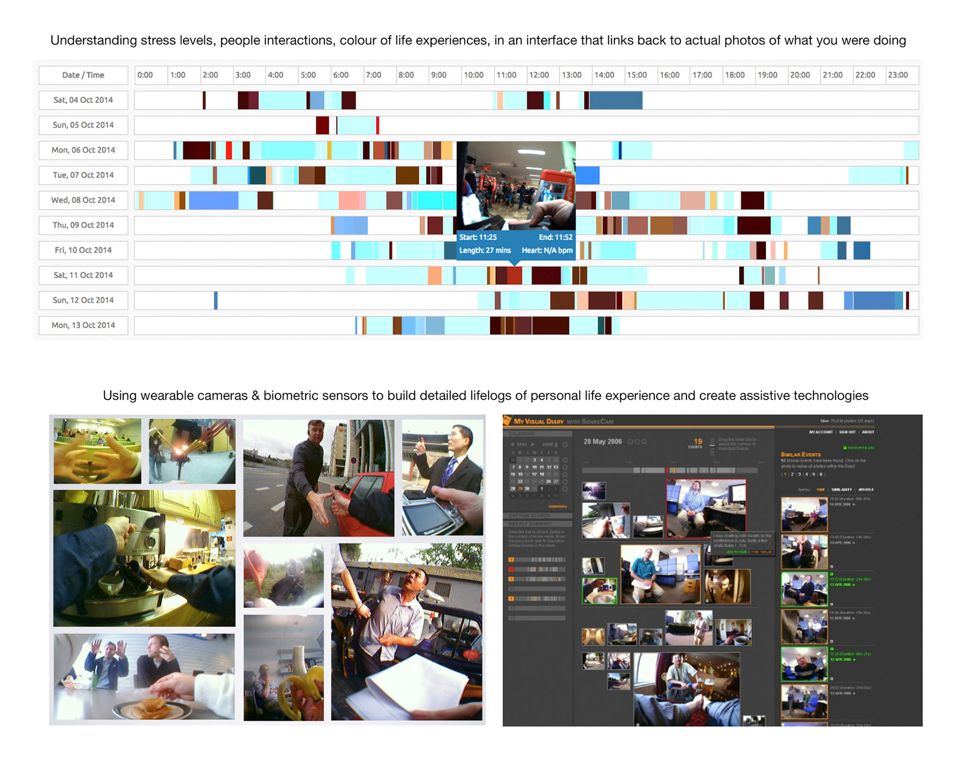 He loves to explore sensor data and has a strong belief that to have true impact, the technology needs to be automatic and extract meaning from wearable sensors, as if by magic. This is what he is working on. In his view lifelogging opens up huge potential for individuals to improve their memories, personal performance, health, learning and social interactions.